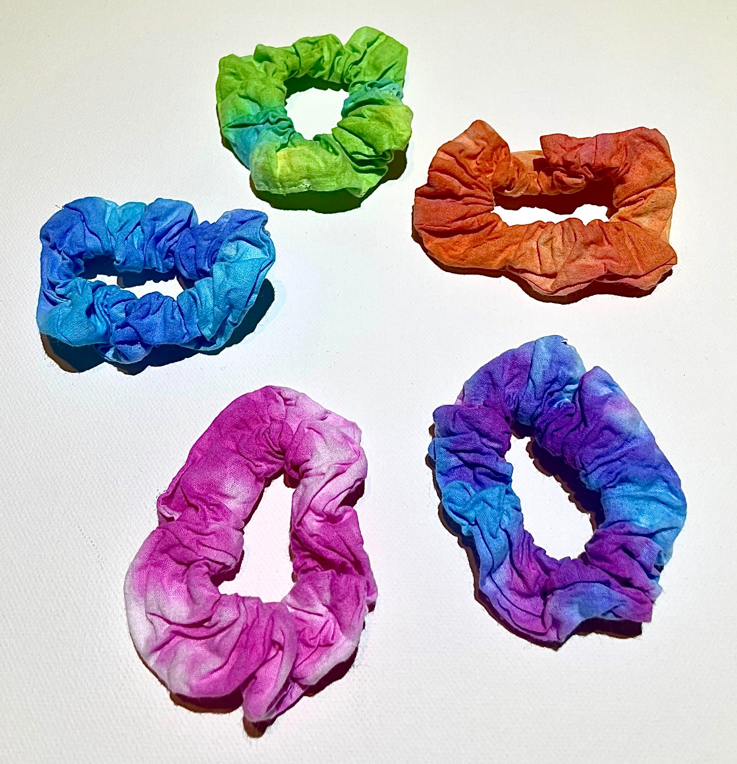 Each hair scrunchie is hand dyed by us so each one is 100% original. The images are a guide to the colour and style - your scrunchie may differ from those shown...but it will be totally unique to you :)